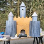 Towers and conical abutments made from timber frames and plastic sheet, a wrestle at times! Reference is a low res AI image! I 3DModelled a simple mock-up and went from there dimensionally.